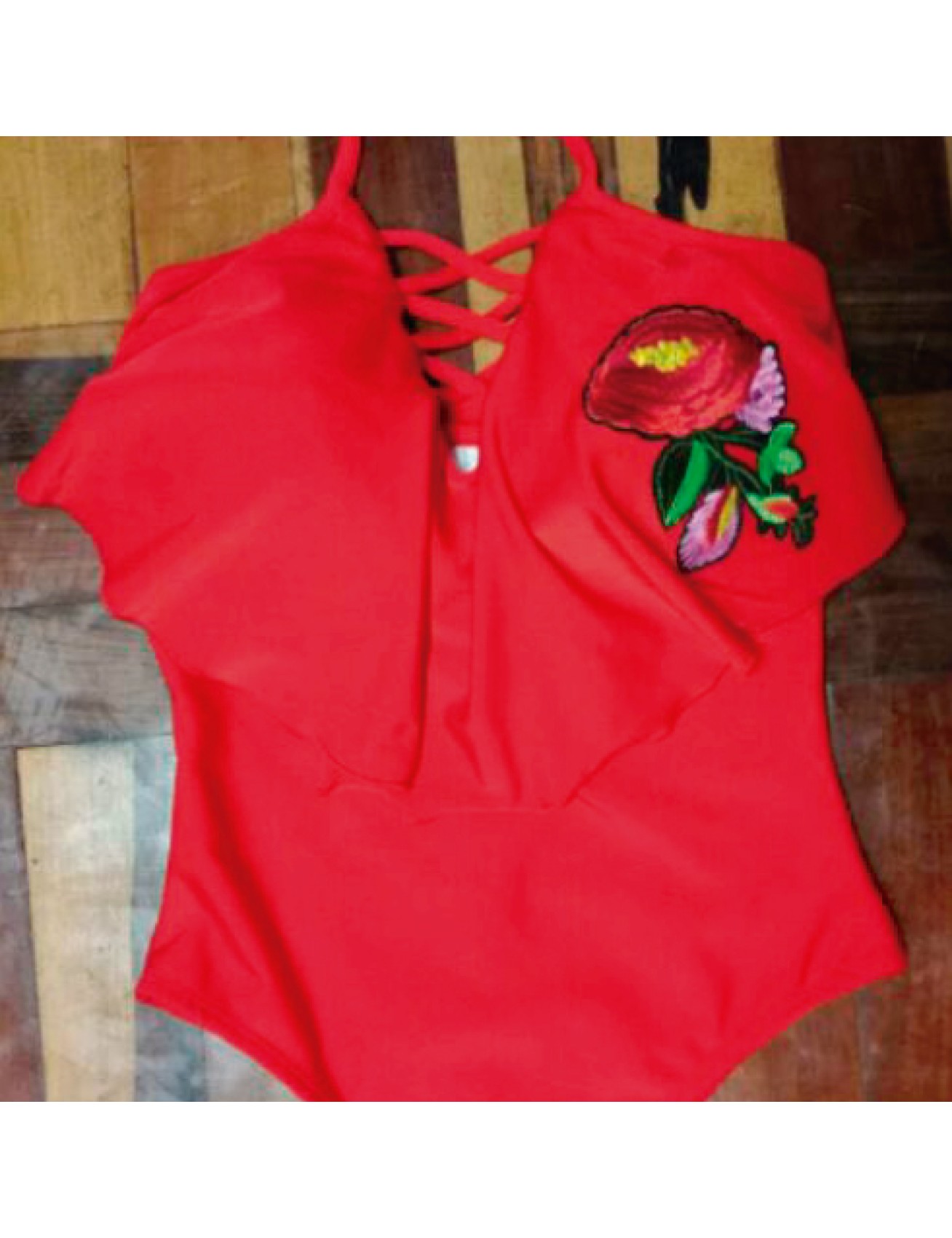 Entera unicolor con copas y bordado.