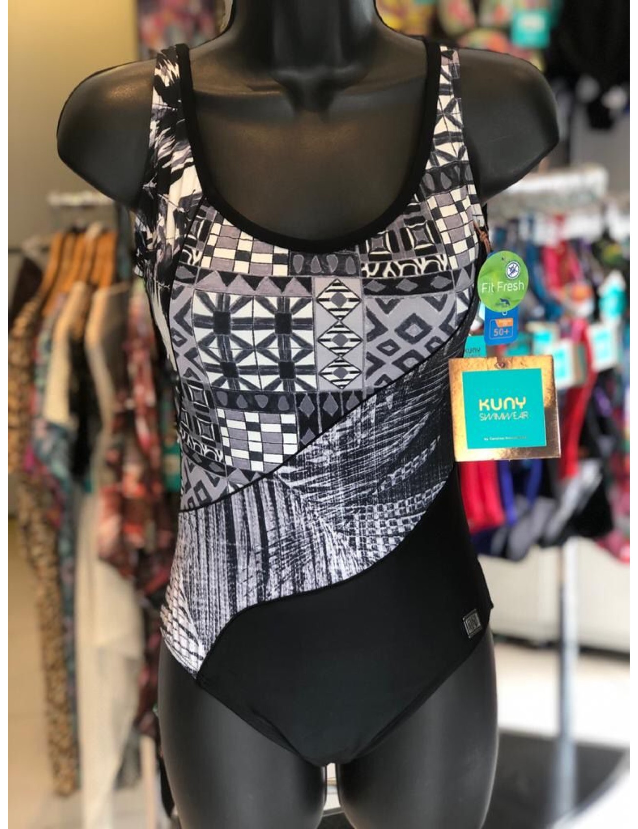 Traje de baño entero con copas, cortes en diagonal, pierna escote bajo espalda con broche tejido control de abdomen.