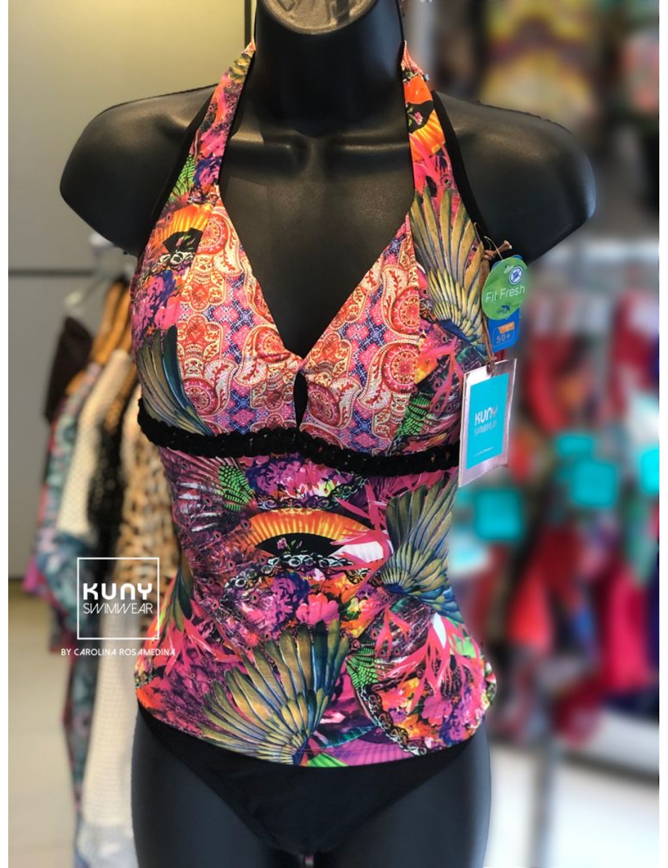 Tankini con copas y aros, espalda cubierta y truza corte regular
